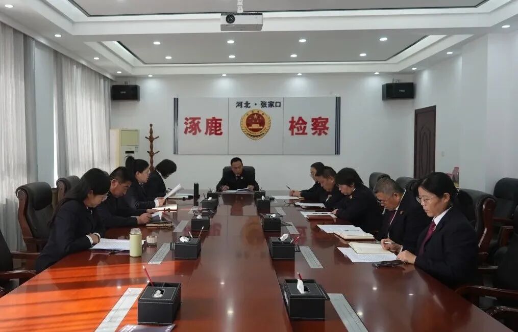 涿鹿县人民检察院召开党组(扩大)会,深入学习贯彻党的二十届四中全会精神,研究部署贯彻落实举措。会议由党组书记、检察长张建全主持,院领导班子成员及各内设机构负责人参加会议。