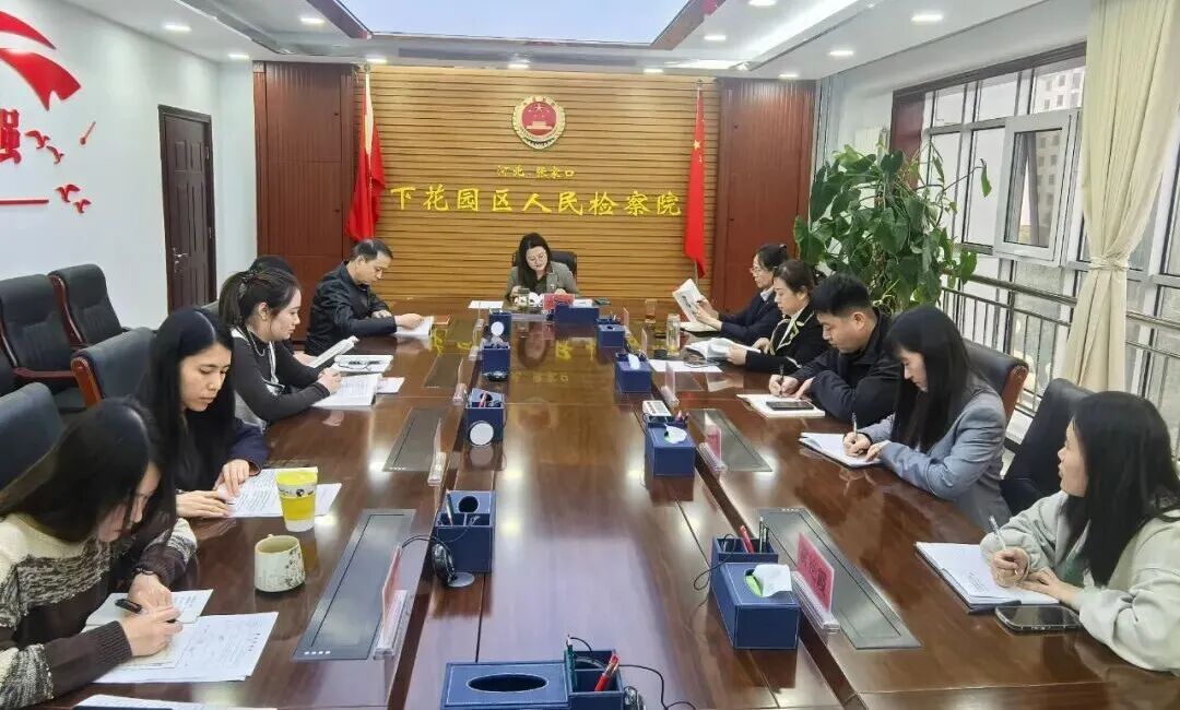 张家口市下花园区人民检察院召开党组理论学习中心组学习会,学习传达党的二十届四中全会精神。会议由党组书记、检察长班智慧主持,院领导参加会议,内设机构负责人列席会议。