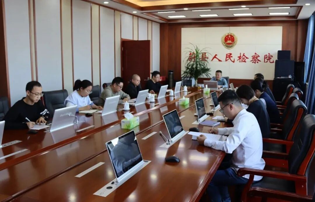 蔚县人民检察院召开党组(扩大)会,专题传达学习党的二十届四中全会精神。会议由党组书记、检察长闫飞主持,院领导班子成员、各部门负责人参加会议。
