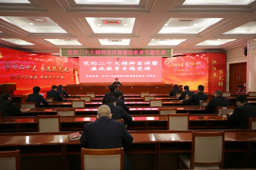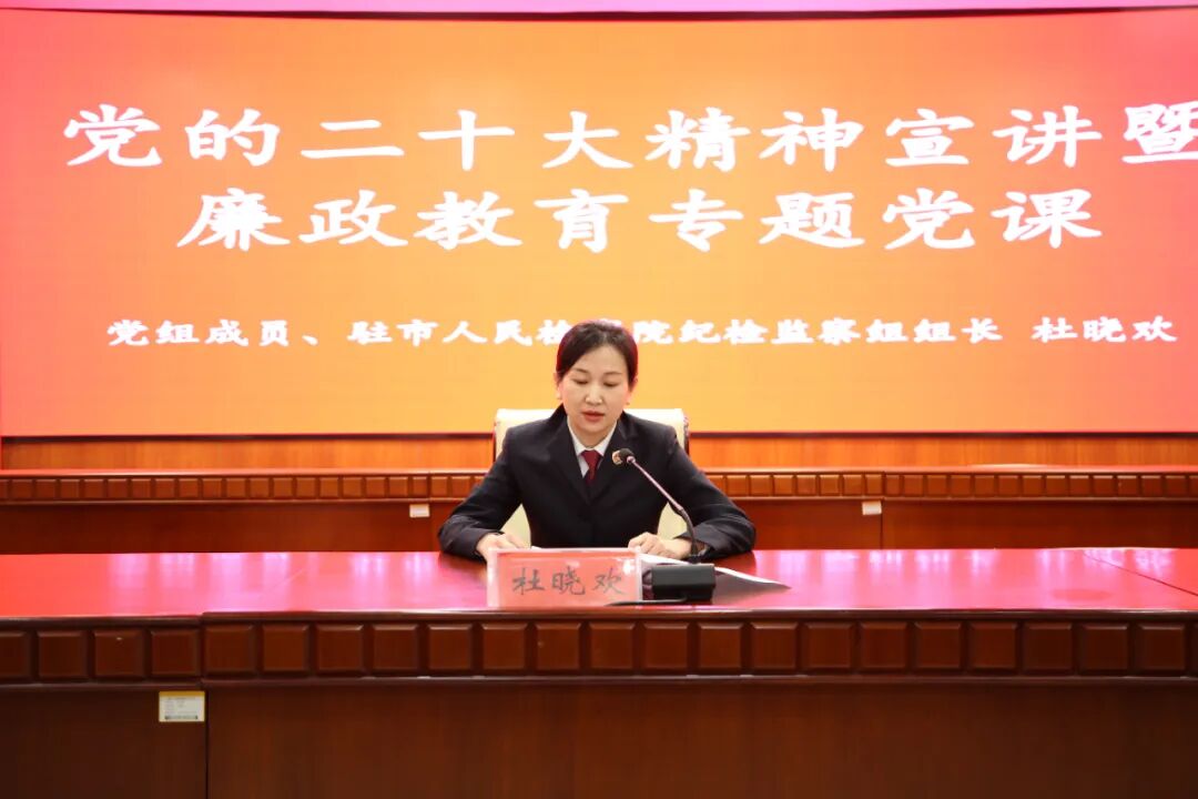 为进一步深入学习宣传贯彻党的二十大精神,1月16日下午,张家口市人民检察院举办党的二十大精神宣讲暨廉政教育专题党课,院党组成员、市纪委监委驻院纪检监察组组长杜晓欢围绕党的二十大关于全面从严治党、党风廉政建设和反腐败工作等方面要求,结合检察工作实际,开讲廉政专题党课。