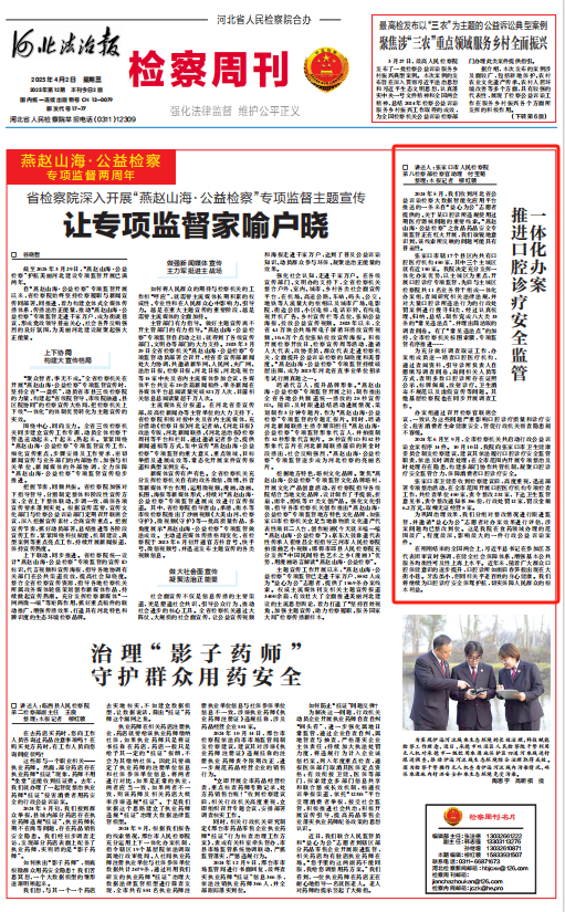 2024年5月,我们收到河北省公益诉讼检察大数据智能化应用平台推送的一条来自“益心为公”志愿者提供的、关于某口腔诊所违规使用过期医疗器械问题的重要线索。“燕赵山海·公益检察”之食品药品安全专项监督正在红火开展,我们敏锐地意识到,该线索所反映的问题可能具有普遍性。